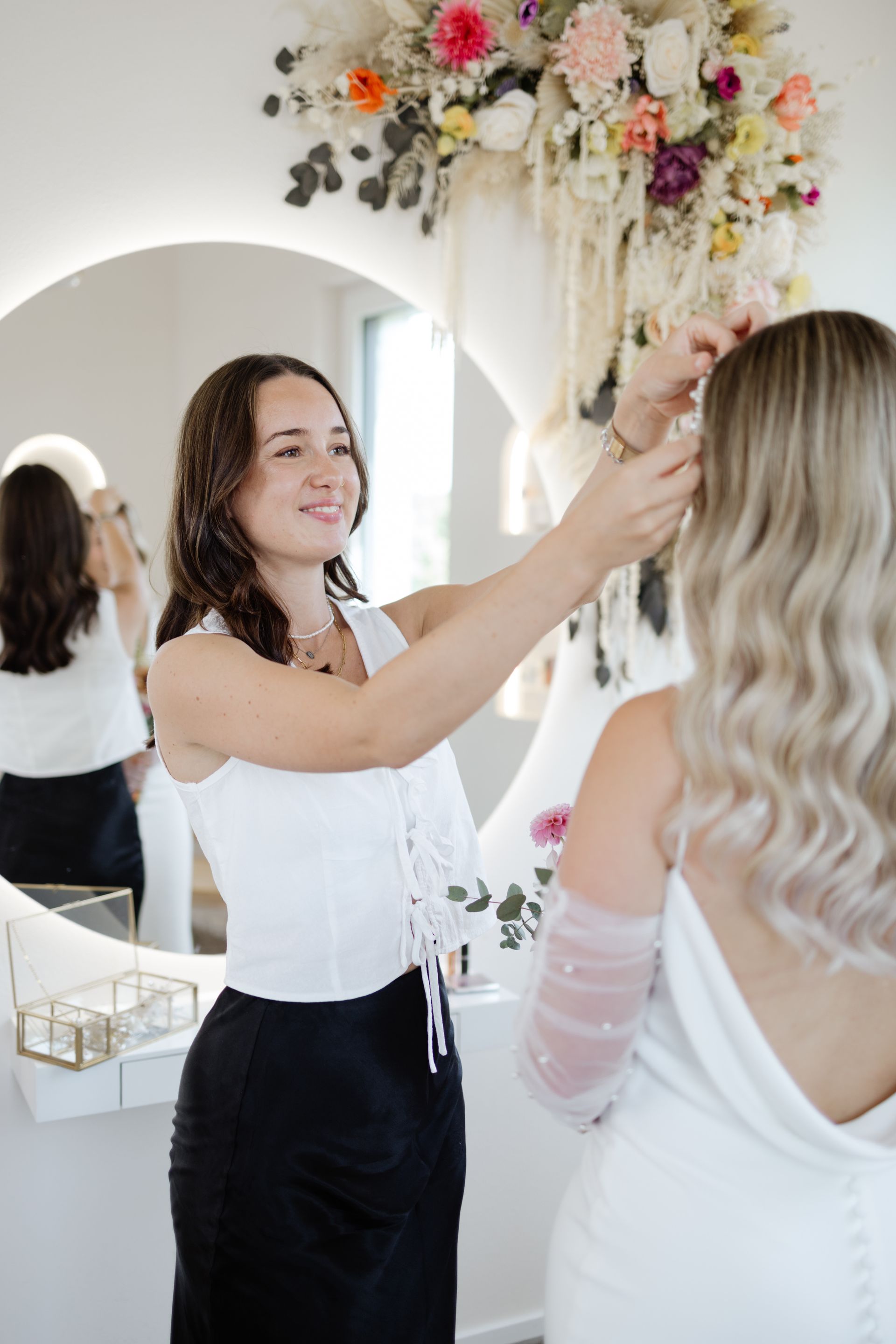 Ein guter Einstieg war für mich die Ausbildung zur Friseurin, bei der ich alle Grundlagen, was Frisuren und Makeup anging, erlernen konnte. Mit der Weiterqualifizierung zur Friseurmeisterin perfektionierte ich meine Fähigkeiten. Schon während meiner Ausbildung entdeckte ich meine Begeisterung für das Hochstecken, Stylen und Schminken. Deshalb wollte ich nur noch eins: mein eigenes Business als Hair- & Makeup Artistin. Endlich kann ich meine Kreativität und meine Leidenschaft in meiner Selbständigkeit vereinen. Ich besuche laufend Fortbildungen und Masterclasses um meinen Kunden das Beste bieten zu können. Denn: "Wer aufhört besser zu werden, hat aufgehört gut zu sein!"